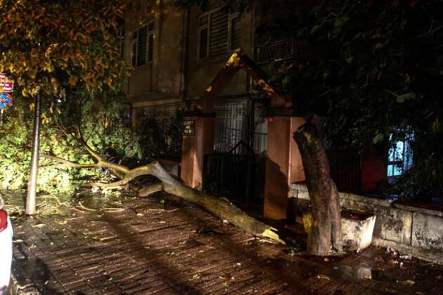 Marmara Bölgesi'nde etkili olan ve İstanbul'da da beklenen sağanak yağış başladı. Kuvvetli yağış ve fırtına nedeniyle birçok yerde ağaçlar devrilirken sağanak yağış nedeniyle bazı yollarda su birikintileri oluştu.
