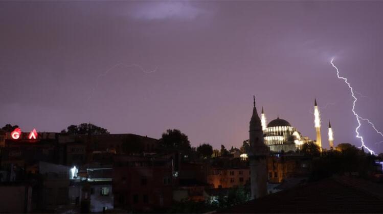 Meteoroloji Genel Müdürlüğü ile İstanbul Valiliğinin uyarılarının ardından kentte beklenen gök gürültülü sağanak yağış, birçok bölgede etkili olurken gökyüzü şimşeklerle aydınlandı. Kent genelinde etkili olan yağış nedeniyle bazı cadde ve sokaklarda su birikintileri oluştu.