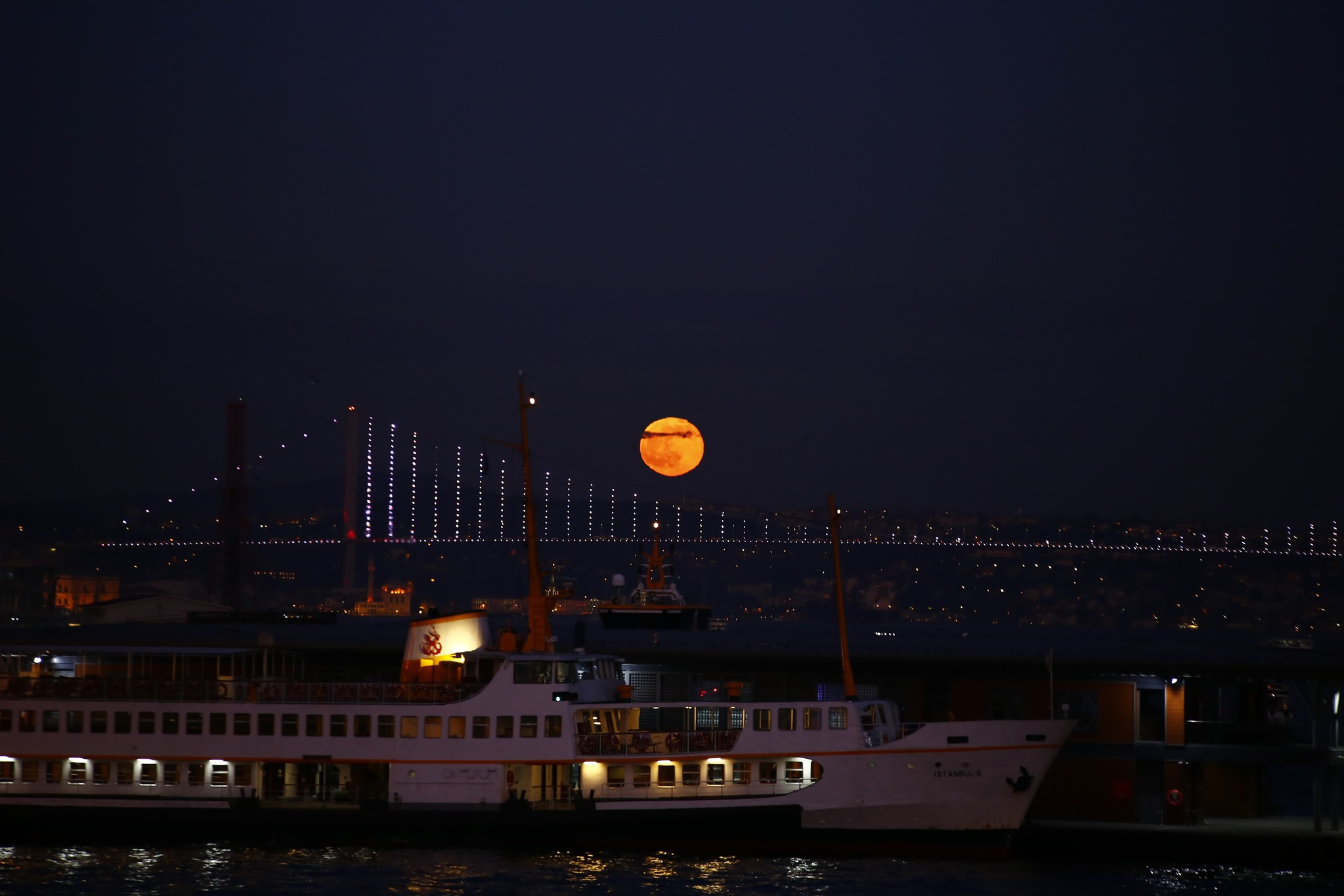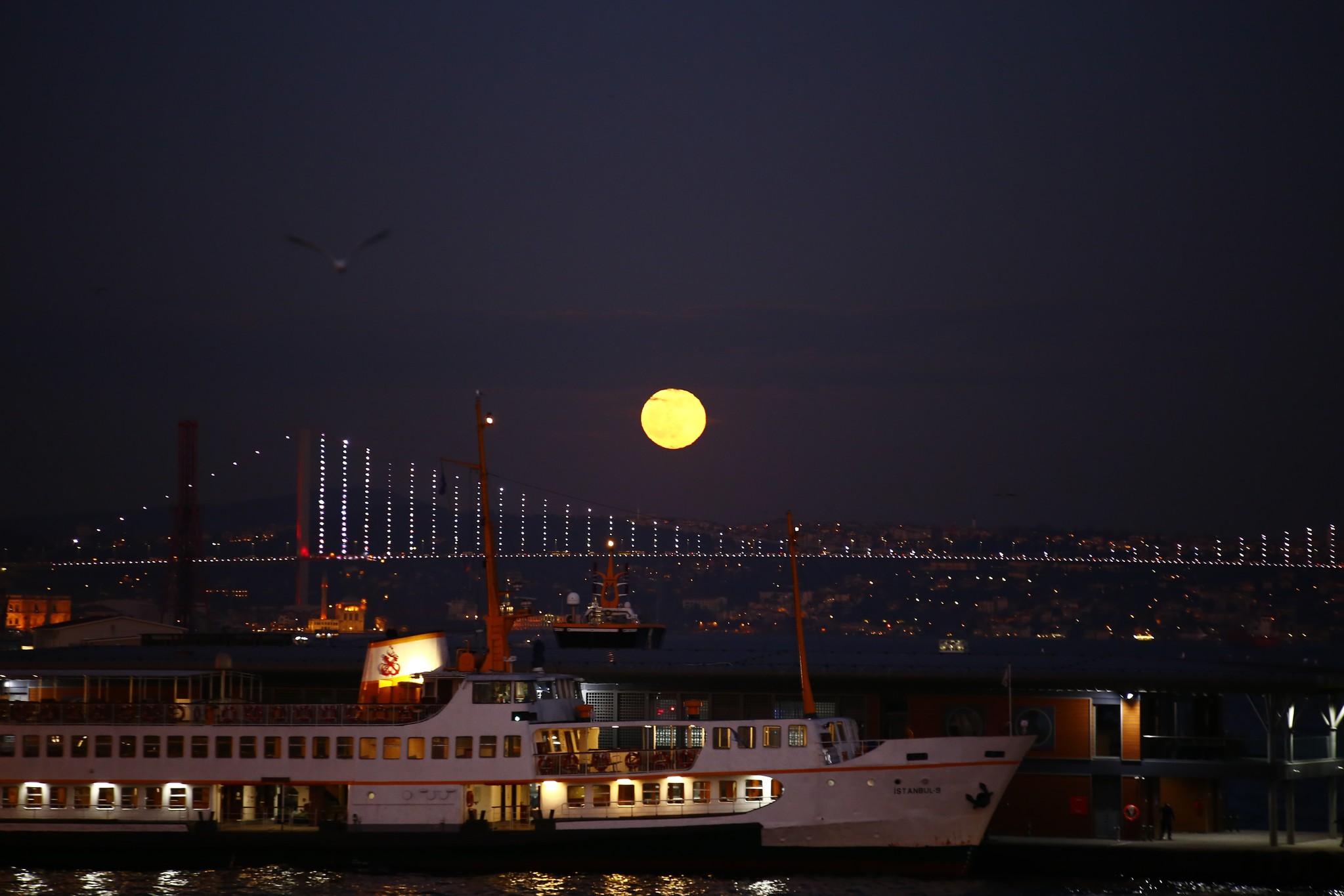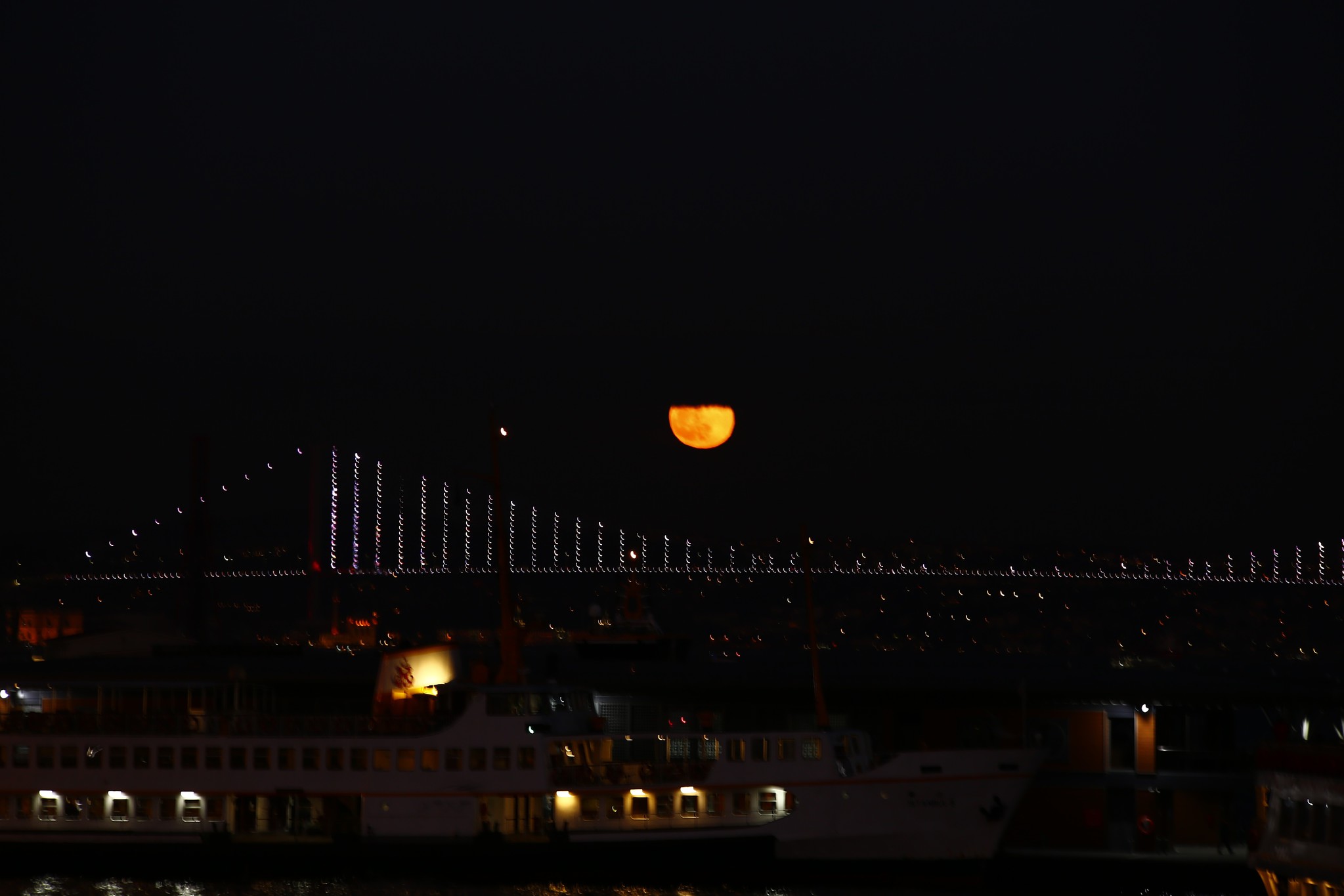 Günün kararması ve köprünün ışıklarının açılması sonucu dolunay; vapurlar, martılar ve deniz ile herkesin ilgi odağı oldu.