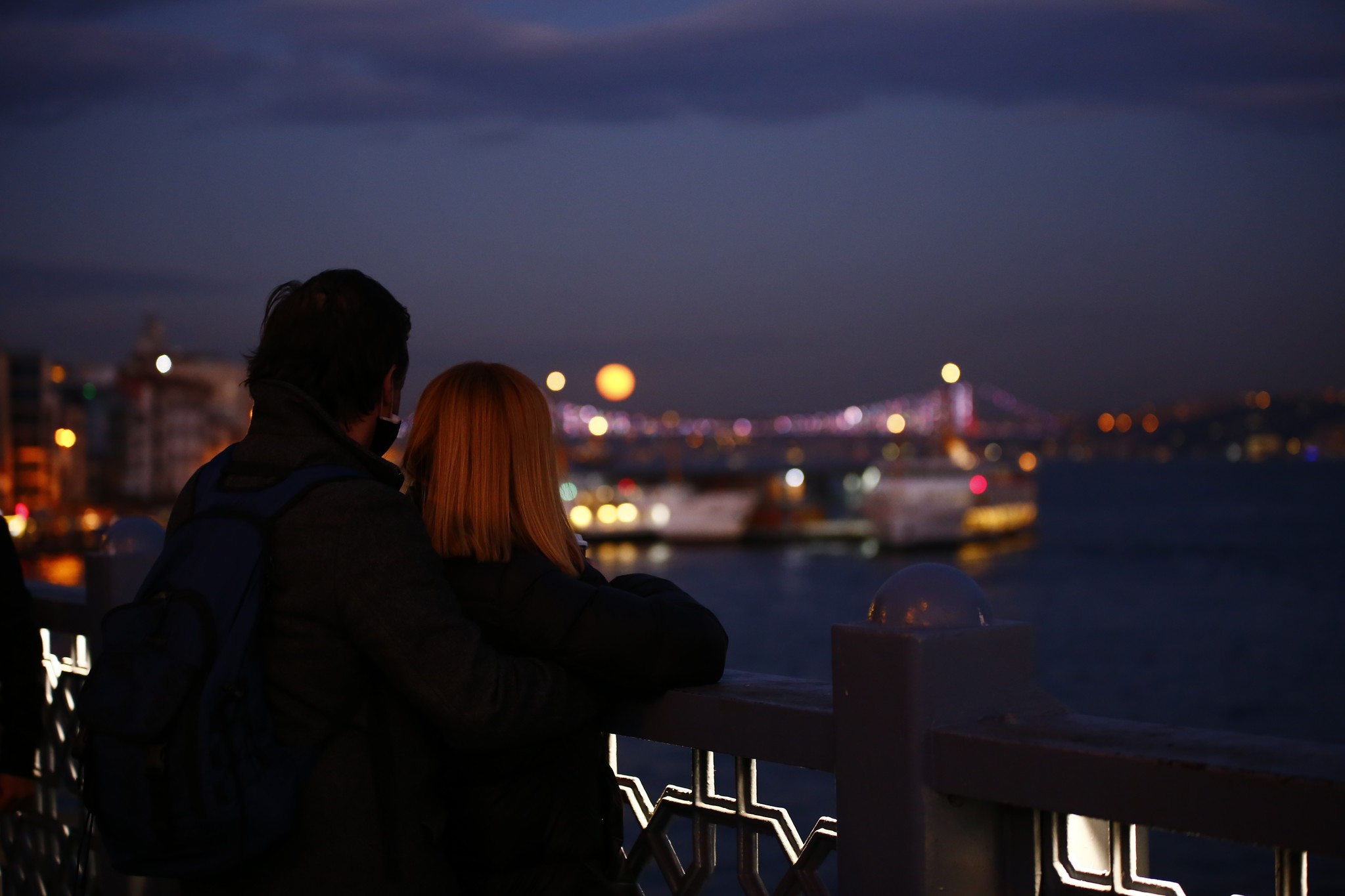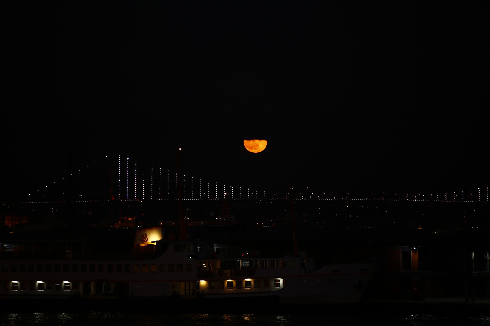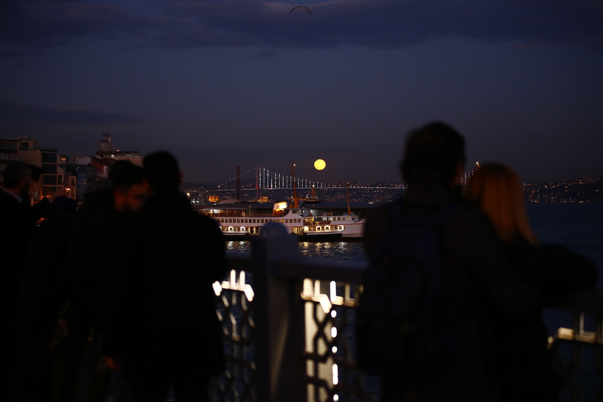 Günün kararması ve köprünün ışıklarının açılması sonucu dolunay; vapurlar, martılar ve deniz ile herkesin ilgi odağı oldu.