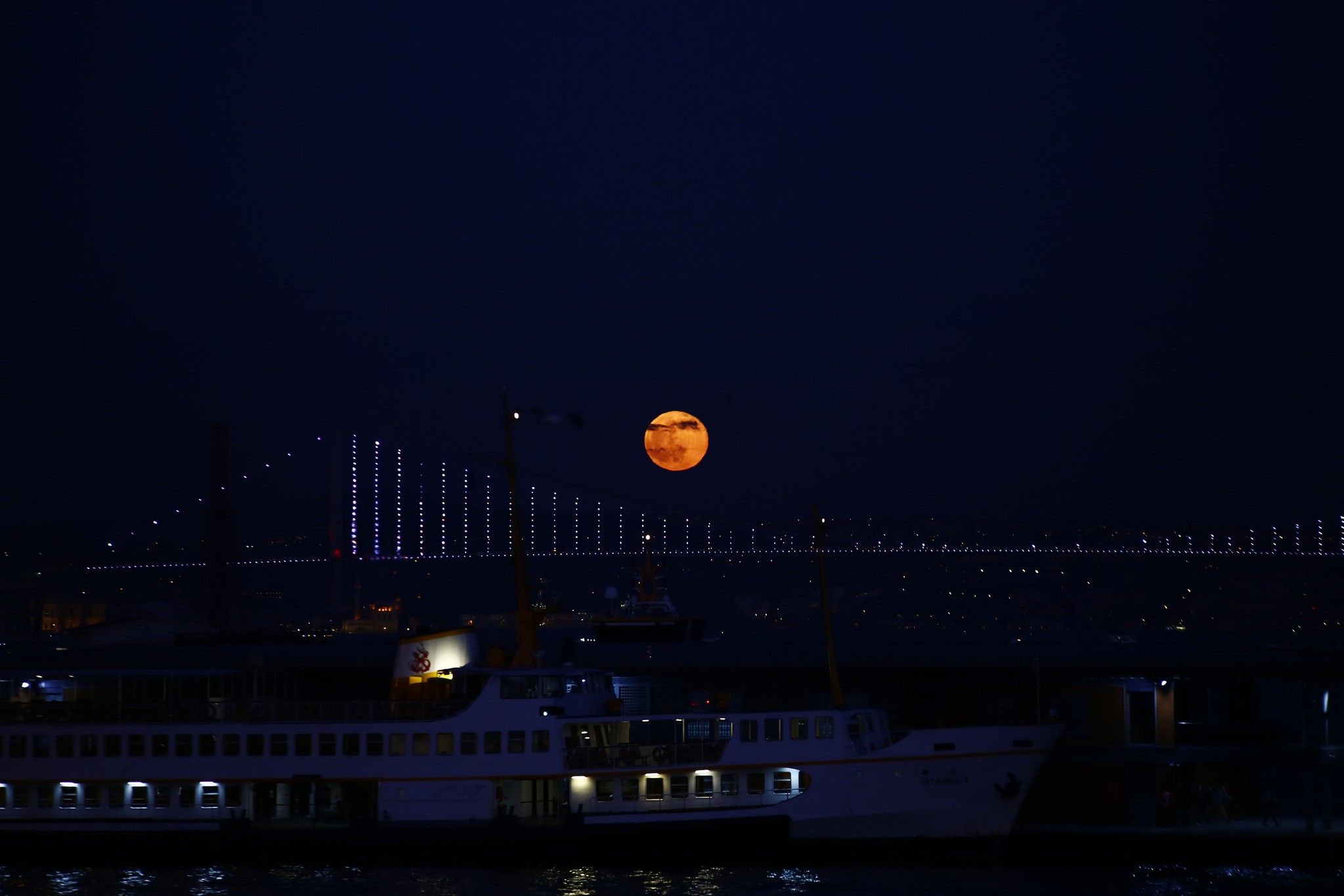 Yılın son dolunayının 15 Temmuz Şehitler Köprüsü'nün üzerinden doğuşunda oluşan muhteşem manzara hayran bıraktı. 15 Temmuz Şehitler Köprüsüyle dolunayın aynı karede buluşması ise kartpostallık görüntüler oluşturdu.
