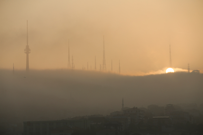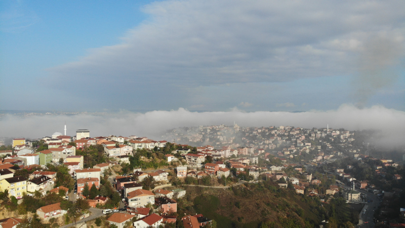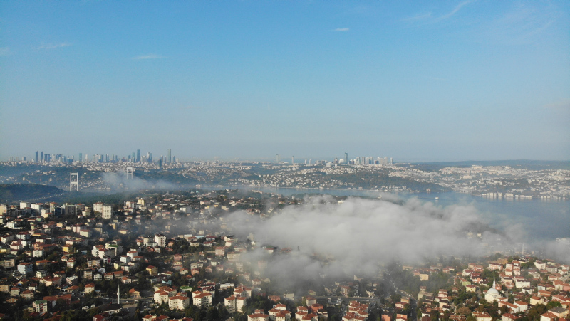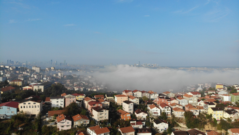 İstanbul'da sabah saatlerinde etkili olan sis adeta binaların üzerini örttü. Kartpostallık görüntülerin oluştuğu sabah saatlerinde ormanlık alanlar ve binalar adeta görünmez oldu.