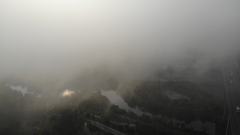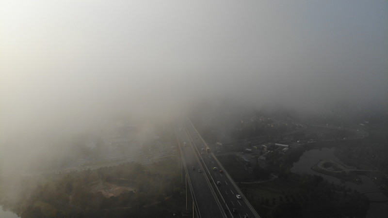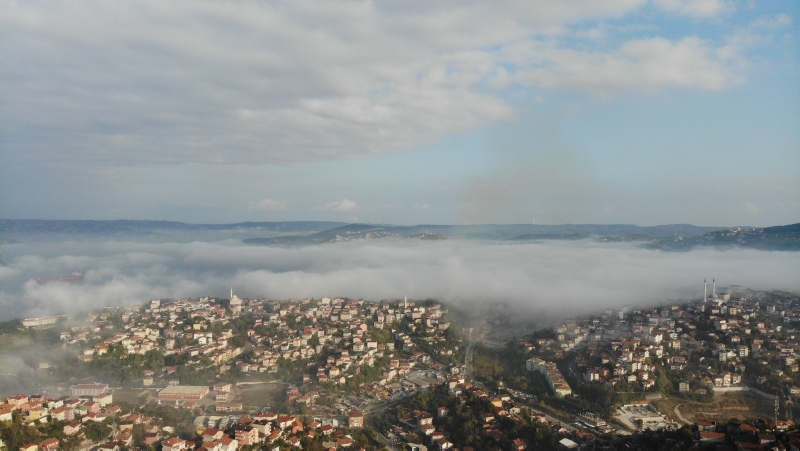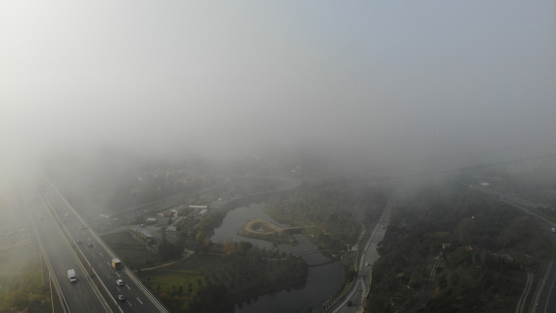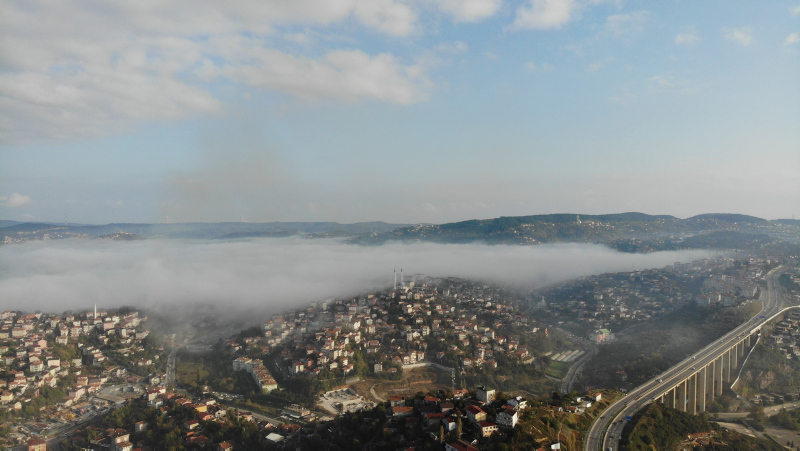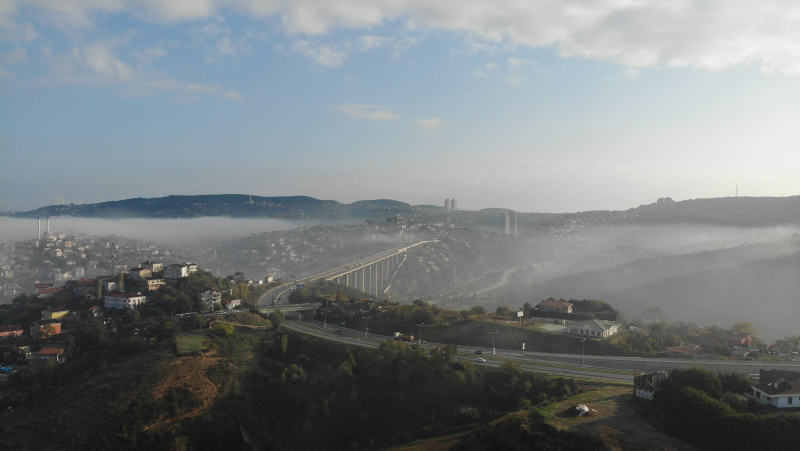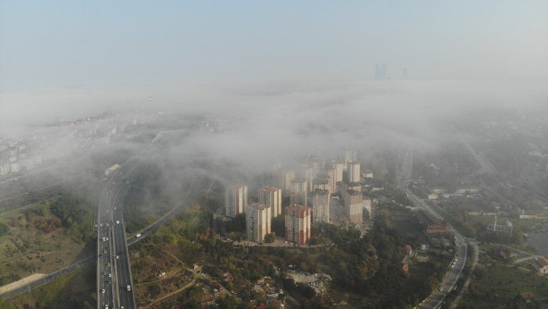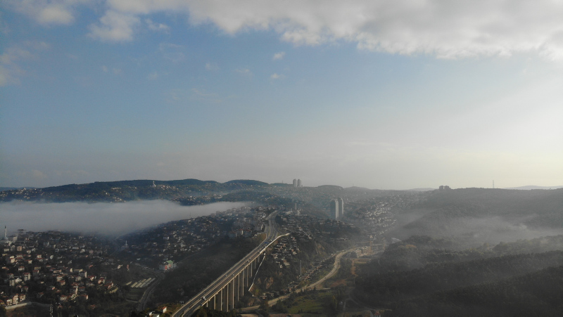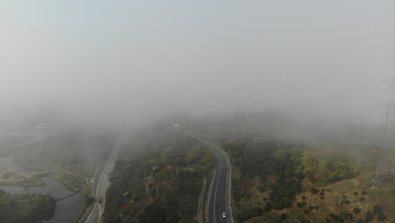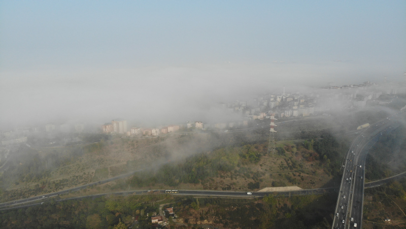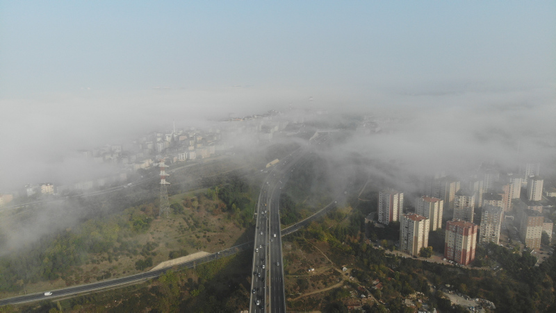 Sis tabakasının TEM otoyoluna inmesiyle görüş mesafesi azalırken ortaya ise güzel manzaralar çıktı. Manzara ise drone ile havadan görüntülendi.