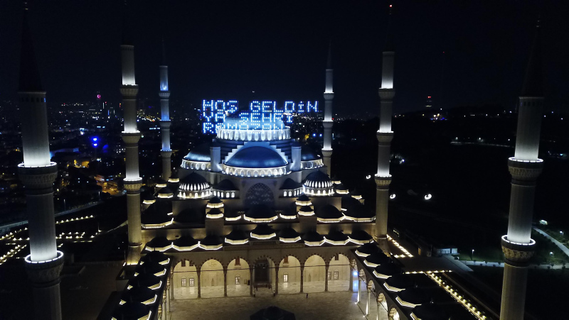 Ramazan ayının gelmesiyle camilerin minarelerini süsleyen mahyalar yandı. Çamlıca Camii ve Sultanahmet Camii'ne asılan mahyalar havadan görüntülendi.