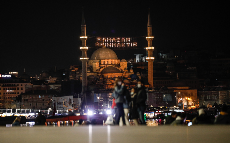 İstanbul'da Ramazan ayının gelmesiyle birlikte çift minareli camiler mahyalarla süslendi. Yarın Ramazan ayının ilk günü olması sebebiyle akşam ezanın ardından camilerdeki mahyalar yandı.
