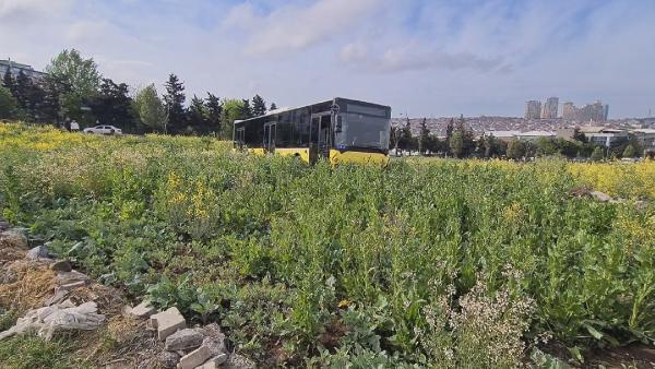 İstanbul'da İETT klasiği! Araziye uçan otobüs ekinleri ezdi