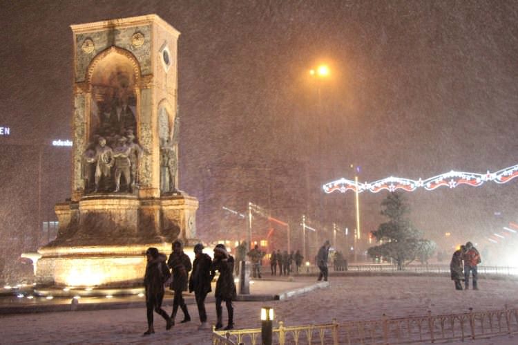 Taksim Meydanı da karın etkisiyle beyaza bürününce ortaya bu güzel görüntüler çıktı.