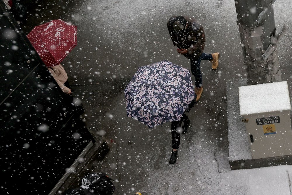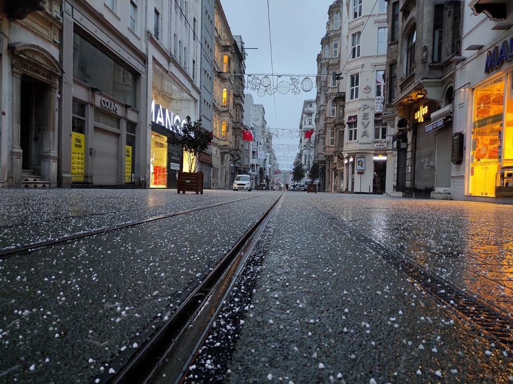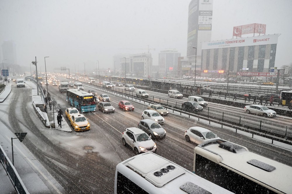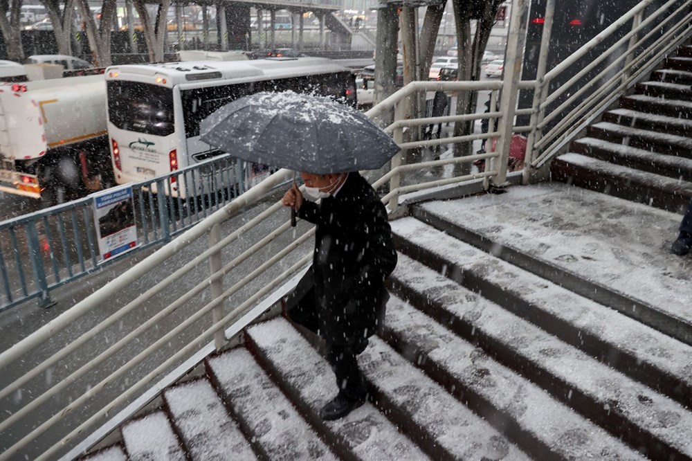 İstanbul'da Anadolu ve Avrupa Yakası'nın bazı bölgelerinde kısa süreli kar yağışı ve dolu görüldü. Yağan kar nedeniyle yolda beyaz örtü oluştu.