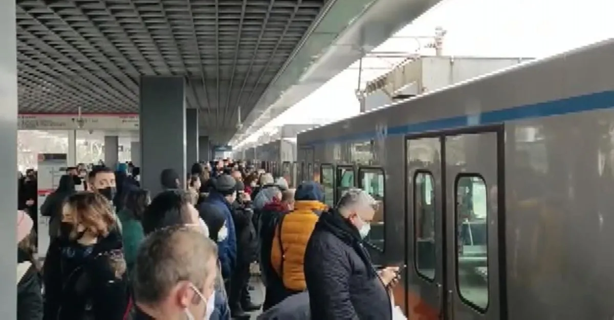 Metro seferi yeniden başladı. Arıza nedeniyle işe gitmek isteyenler dakikalarca durakta bekledi. O anlar istasyonda bekleyenler tarafından görüntülendi.