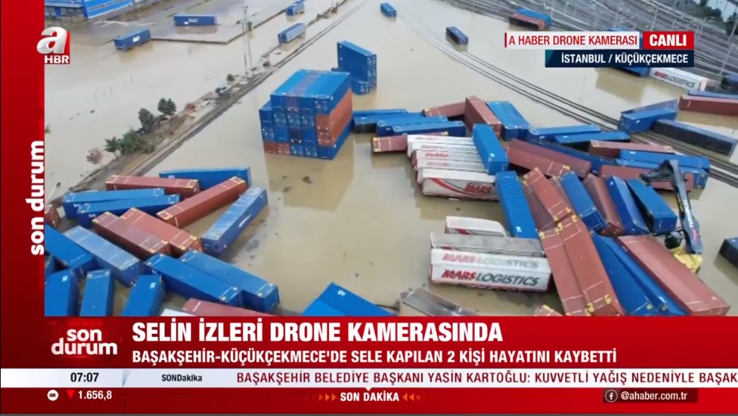 Son dakika haberi... İstanbul'un Arnavutköy, Başakşehir ve Küçükçekmece ilçelerinde etkili olan kuvvetli yağış nedeniyle 2 kişi hayatını kaybetti, 12 kişi de yaralandı. A Haber muhabiri Mehmet Zeyrek Küçükçekmece'deki selin izlerini drone kamaerasıyla gözler önüne serdi.