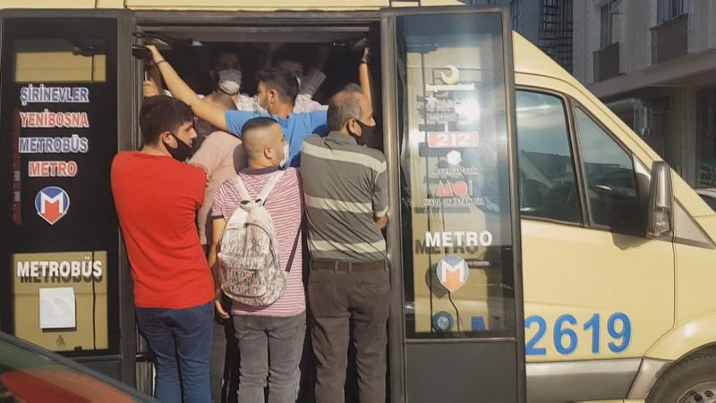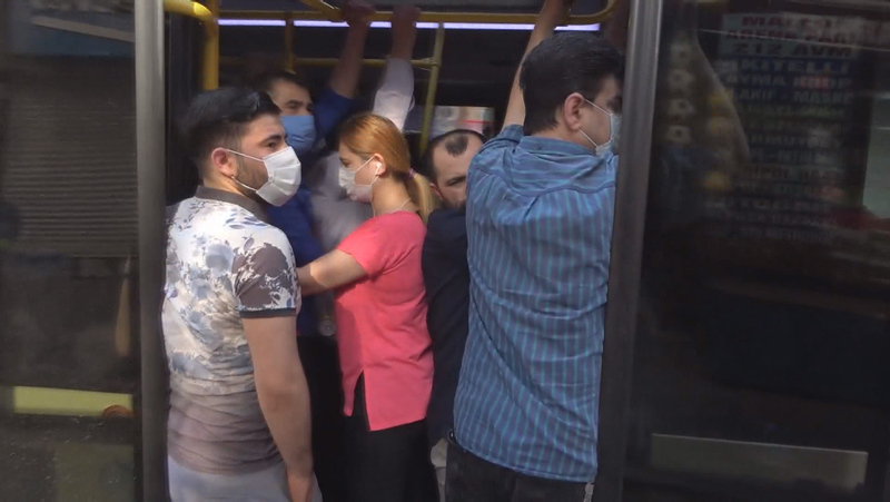 İstanbul'da şoke eden görüntüler! Minibüslerde maskeli izdiham