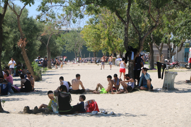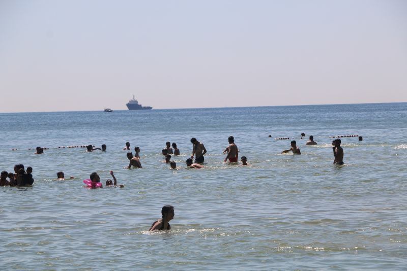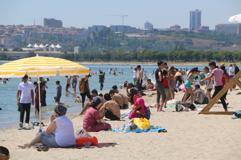 Aileleri ve arkadaşları ile plaja gelen çok sayıda kişi denize girip serinledi. Plajda sosyal mesafe ve maske kuralının ise hiçe sayıldığı görüldü.