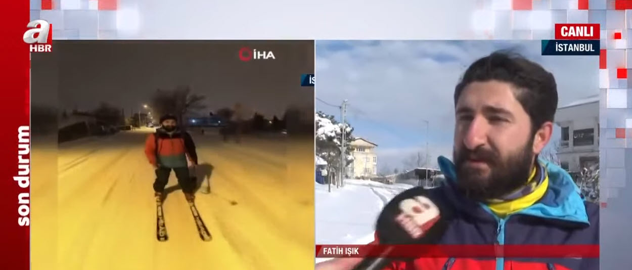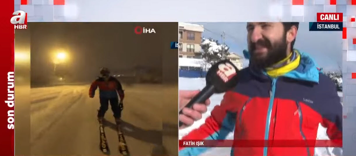 Fatih Işık İsimli vatandaş, karlar kaplanan yolda Avcılar'dan Firuzköy'e kadar kayak yaparak gitti. Sosyal medyadan paylaşılan görüntüler, büyük beğeni topladı. Işık, A Haber canlı yayınında o anları anlattı.