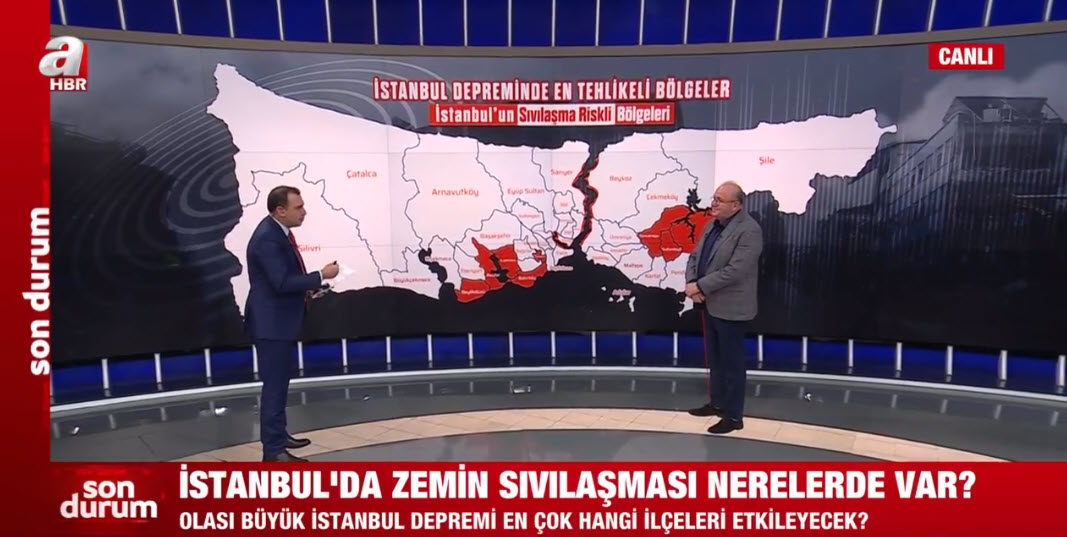Büyük İstanbul depremi en çok hangi ilçeleri etkileyecek? Fay hattında sıvılaşma ne demek? İstanbul'da hangi bölgelere özel önlemler alınmalı? İstanbul'da hangi bölgeler riskli? Zemin sıvılaşmasının olduğu ilçelerde neler yapılmalı? İstanbul zemini sağlam olan ilçeler hangileri? Deprem Uzmanı Prof. Dr. Şükrü Ersoy, A Haber canlı yayınında konu ile ilgili önemli değerlendirmelerde bulundu.