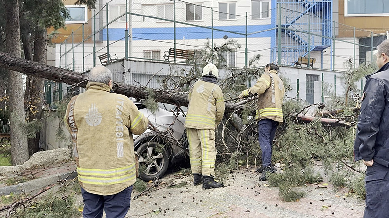 İstanbul'da sabah saatlerinden itibaren etkisini artıran şiddetli rüzgâr, kent genelinde günlük yaşamı olumsuz etkiliyor. Birçok ilçede devrilen ağaçlar yolları kapatırken, bazı evlerin çatıları uçtu. Park halindeki araçlar zarar görürken, ekipler olumsuzluklara müdahale etmek için teyakkuz halinde çalışıyor. İstanbul Valiliği'nden yapılan açıklamada ise, fırtına nedeniyle 89 çatının uçtuğu ve 45 ağacın devrildiği bildirildi. Valilik ayrıca şiddetli rüzgarın saat 22.00'ye kadar devam edeceğini belirtti.