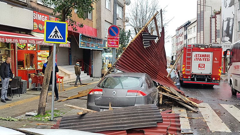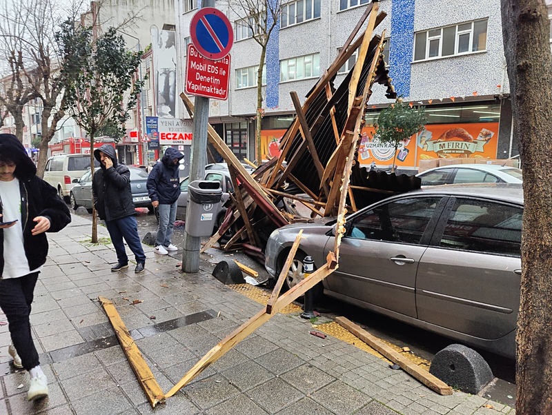 Fırtına sabah saatlerinden itibaren kentin pek çok noktasında yıkıma neden oldu: Avcılar'da bir iş merkezinin dış cephe kaplaması ve çatısı büyük bir gürültüyle yola savruldu. Görgü tanıkları, "Kıyamet kopuyor sandık" diyerek paniği anlattı.
