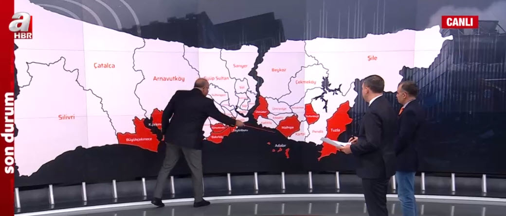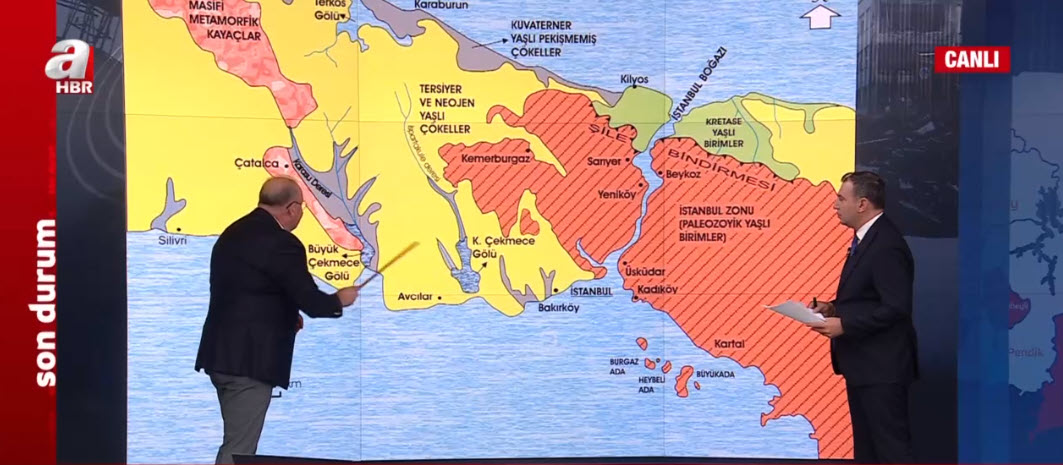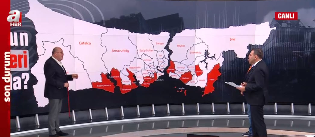 İstanbul'da hangi ilçeler daha riskli? Olası depremde İstanbul'da en çok hangi ilçeler etkilenecek? En sağlam bölgeler nereler? Deprem Uzmanı Prof. Dr. Şükrü Ersoy, A Haber canlı yayınında harita üzerinde tek tek anlattı. Ersoy, "İstanbul'un bir de çifte deprem oluşturma karakteri var." dedi. Olası depremin hangi bölgeleri etklieyeceğini gösterdi.