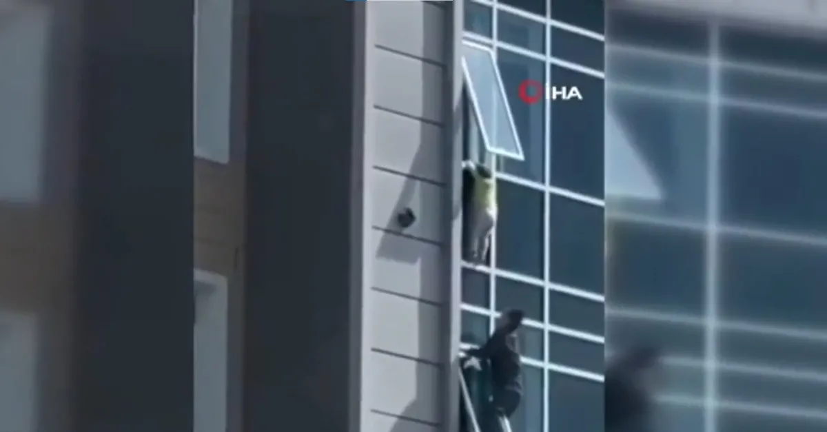 Kazakistan'ın başkenti Nur Sultan'da bulunan bir binanın 8'inci katında bulunan ve yerden yaklaşık 80 metre yükseklikteki pencerede asılı kalan 3 yaşındaki çocuk ölümden döndü.