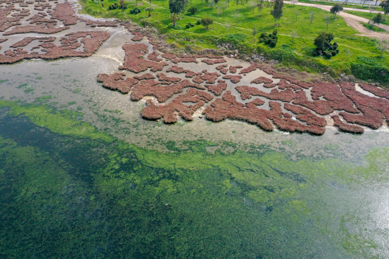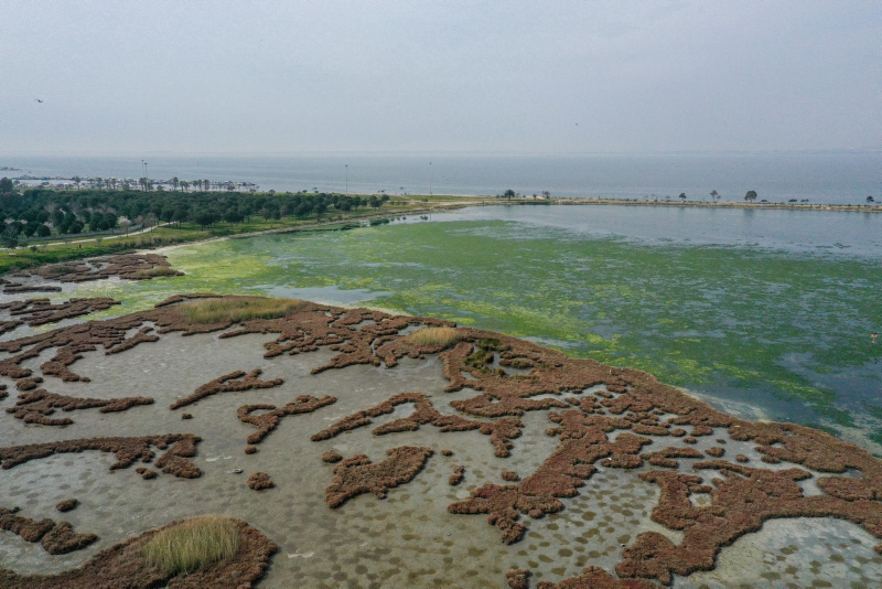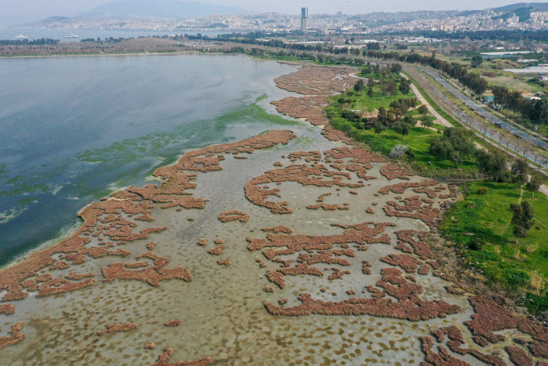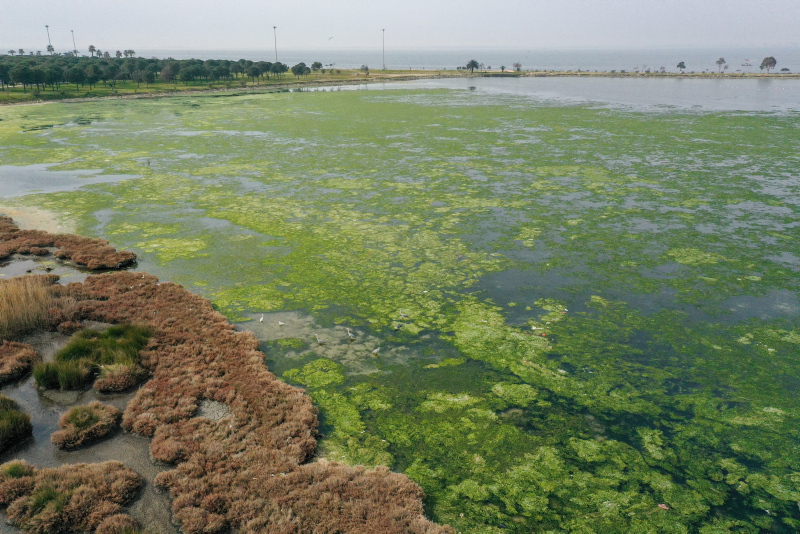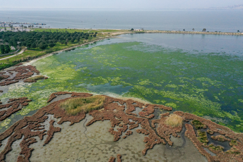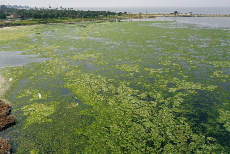 İzmir'in Balçova ilçesinde flamingoların da içlerinde olduğu pek çok kuş cinsine ev sahipliği yapan Çakalburnu Lagünü'nün bir kısmı, havaların ısınmaya başlamasının ardından deniz yosunuyla kaplandı. Ege Üniversitesi Algal Teknoloji Laboratuvarı Koordinatörü Prof. Dr. Meltem Conk Dalay, konuya ilişkin açıklamasında, "Havaların ısınmasıyla İzmir Körfezi'nde ulva lactuca (deniz marulu) için uygun koşullar oluşmaya başladı" dedi.