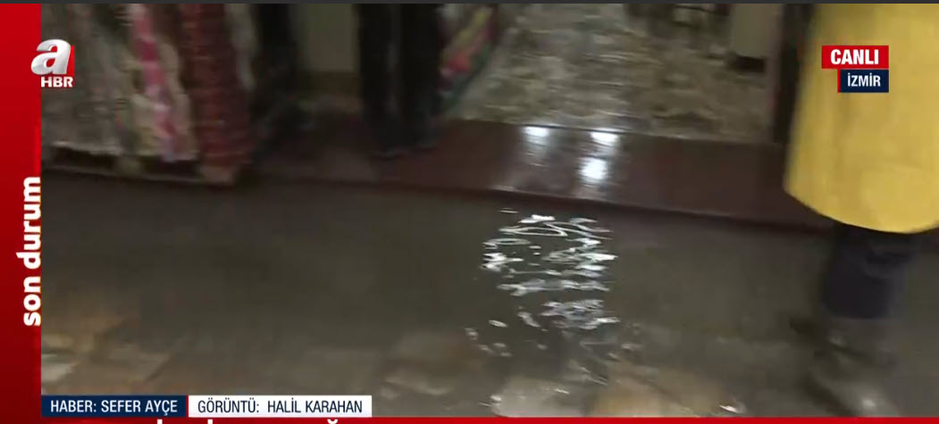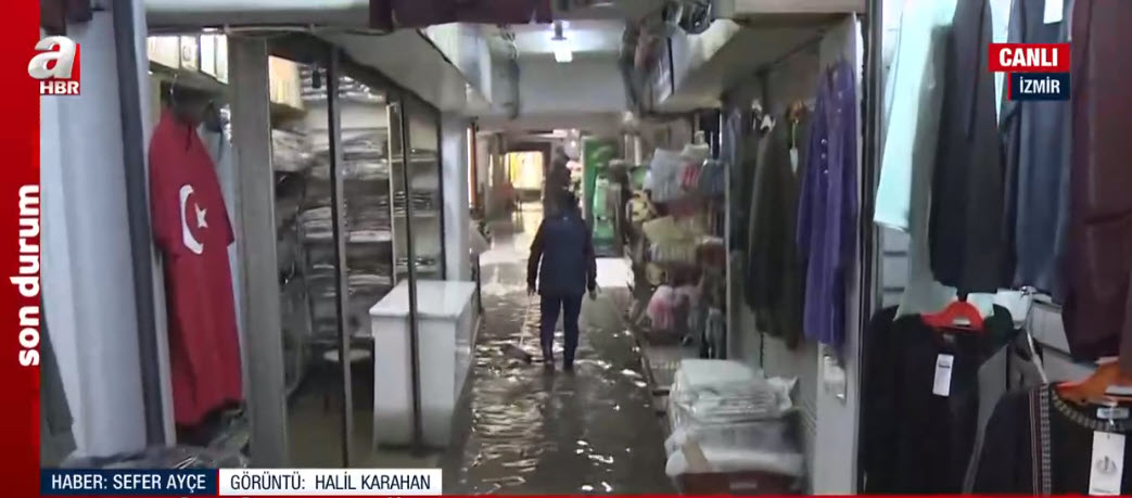 İzmir'de sağanak sonrası su baskınları meydana geldi. Kemeraltı Çarşısı'nda manzara değişmedi. A Haber muhabiri Sefer Ayçe o noktadan detayları aktardı.