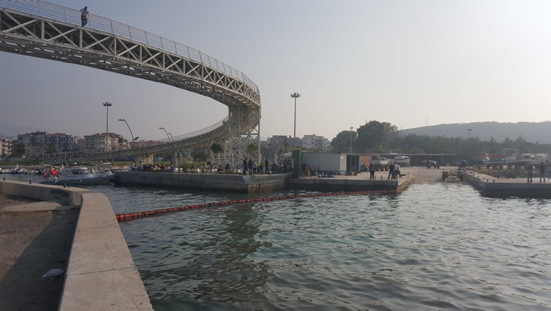 Oluşan yoğun kirlilik nedeniyle balıkçı barınağına giriş ve çıkışlar kapatıldı. Denizin yüzeyindeki atık maddeyi görenlerin haber vermesi üzerine ekipler olay yerine geldi.