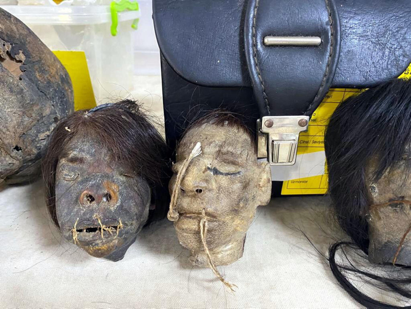 Eserler arasında Peru ve Amazon'un derinliklerinde yaşayan Jivaro yerlilerinin kesip özel işlemlerden geçirerek küçülttükleri, 'Tsantsa' olarak adlandırılan insan başları dikkat çekti.