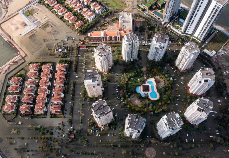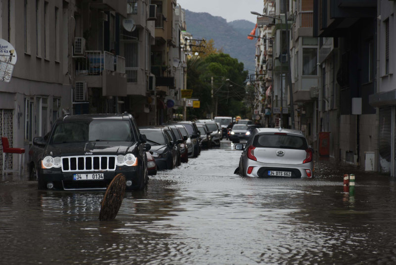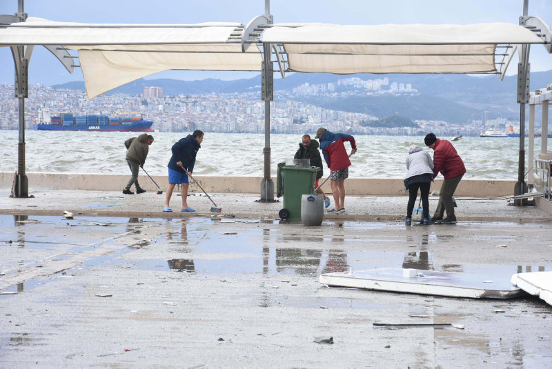 Çeşme ilçesinde meydana gelen deniz taşmasının ardından Karşıyaka ilçesinde fırtına sebebiyle taşkınlar meydana geldi.