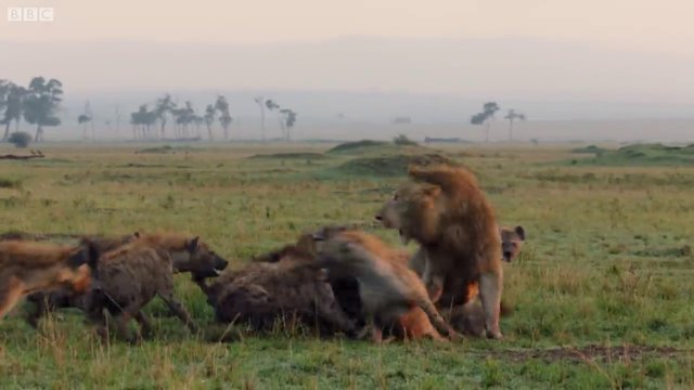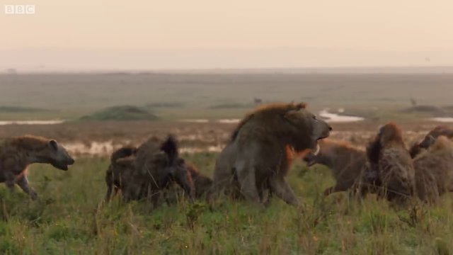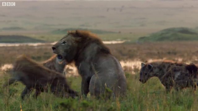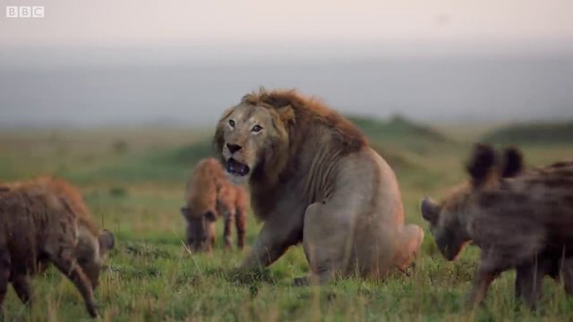 'Hanedanlar' isimli belgeselde etrafı sırtlanlarla çevrilmiş yalnız bir aslanın mücadelesi yayınlandı.