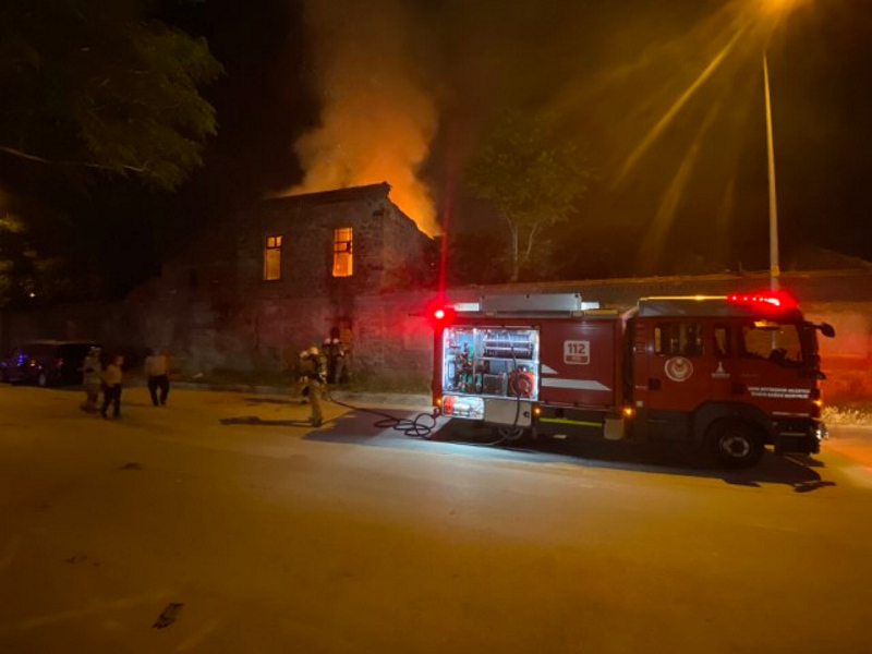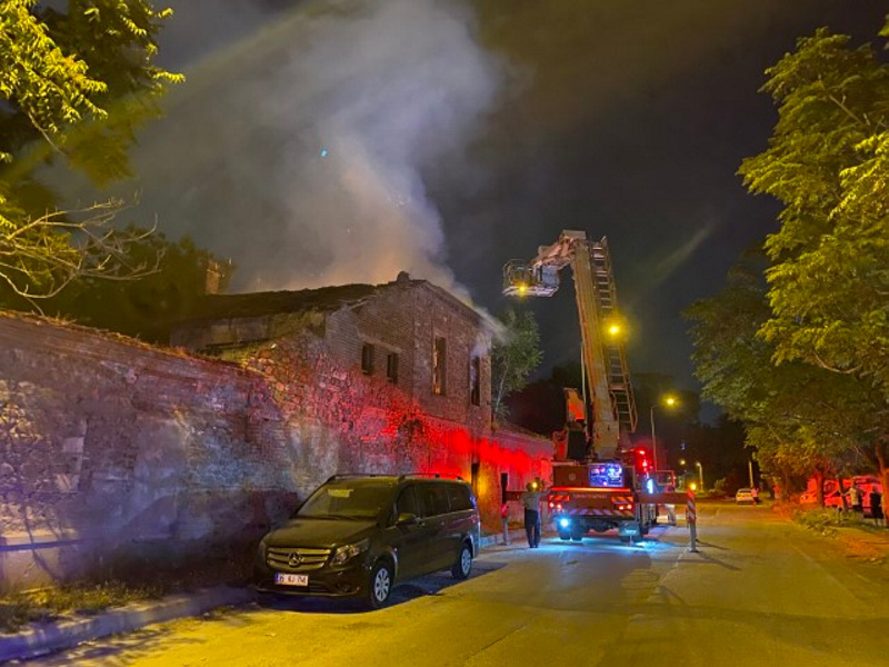 Yangın, saat 21.45 sıralarında Umurbey Mahallesi Şehitler Caddesi üzerinde bulunan tarihi binada henüz belirlenemeyen nedenle çıktı.