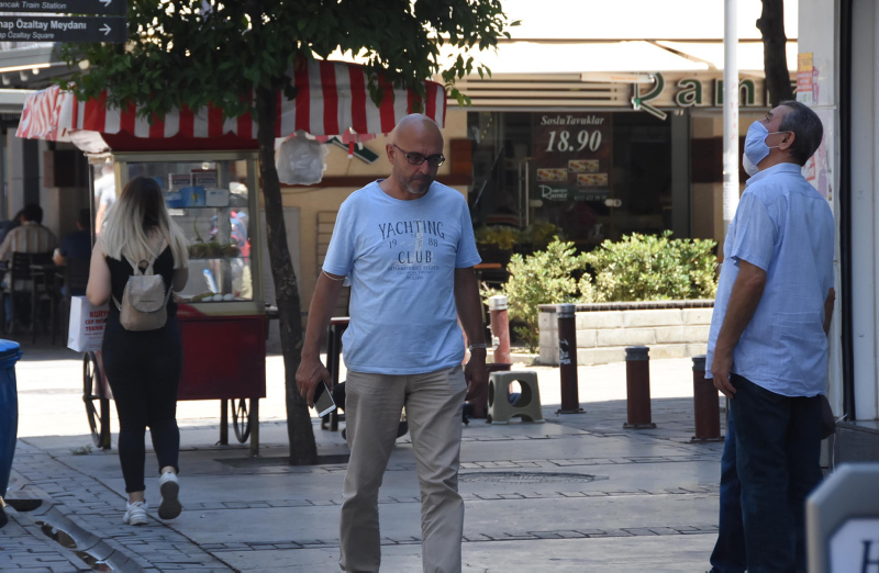 İzmir'de, Kıbrıs Şehitleri Caddesi'nde, sokaktaki vatandaşların bazılarının hala maskeyi ya çene altına ya da koluna taktığı gözlendi. Maske kuralına uymayanlar, sıcaktan ya da kişisel sebeplerden takmamayı tercih ettiklerini söyledi.