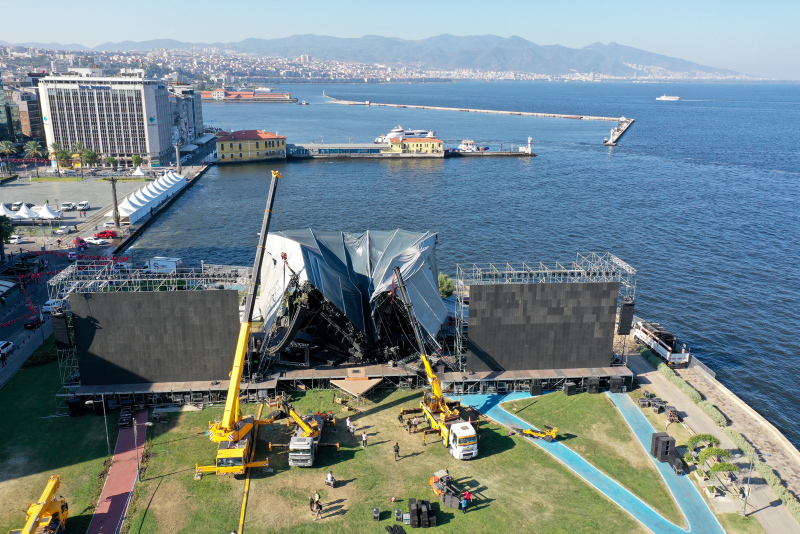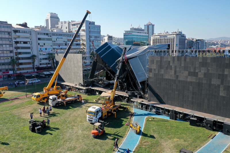 İzmir'in düşman işgalinden kurtuluşunun 100. yıl dönümü etkinlikleri kapsamında, tarkan'ın konser vereceği alandaki dev platform çöktü.
