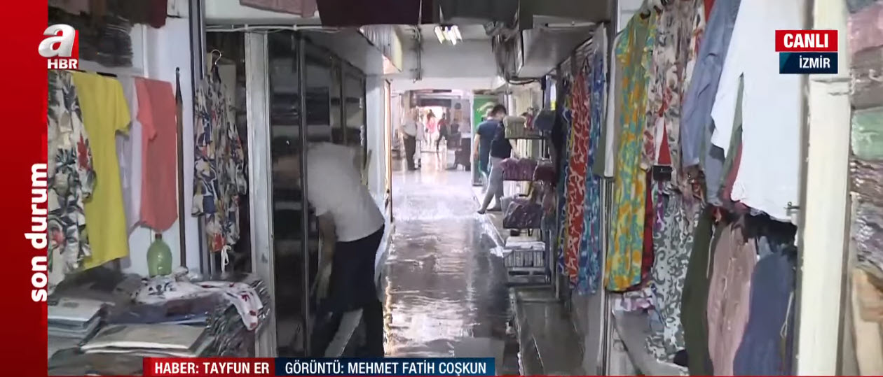 İş yerini su basan bir esnaf, "Formalite icabı rögarları açmaya çalıştılar. Bir el arabası, bir kürek ile çözüm bulmaya çalıştı belediye. 10 dakika sağanakta yine bu hale geldi. Kemeraltı'nda her yağmurda maalesef durum bu" diyerek belediyeye tepki gösterdi.