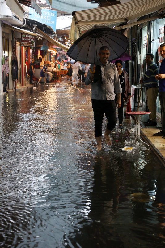 Tarihi çarşıda konfeksiyon işi yapan başka bir esnaf ise, "Esnaf olarak hiç iyi şeyler düşünmüyoruz. Yüzde 70'e oy aldığı için belediye bu kadar rahat sanırım. Hiçbir şey yapmasak da oy veriyorlar diye düşünüyorlar. Her yağmurda bu halde Kemeraltı. Artık bir çözüm bulunmasını istiyoruz" dedi.