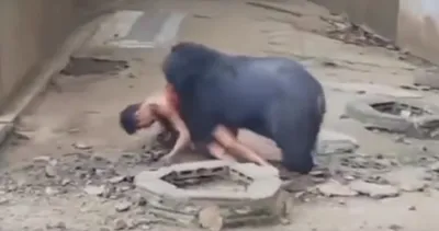Oldukça bakımsız bir hayvanat bahçesinde çekilen görüntülerde ayının bir adama saldırdığı ve adeta canlı canlı yediği görünüyor. YouTube'da +18 uyarısı ile yayınlanan videoda şoke etkisi yaratıyor.