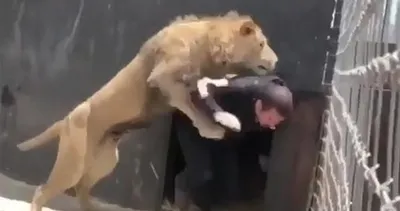 Kafeste dehşet anları! Aslan bakıcının üstüne atladı...