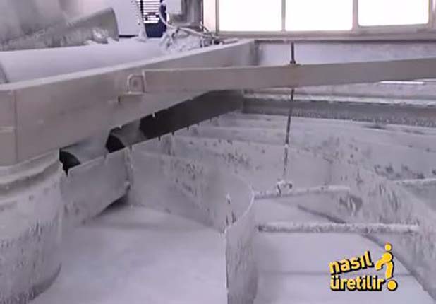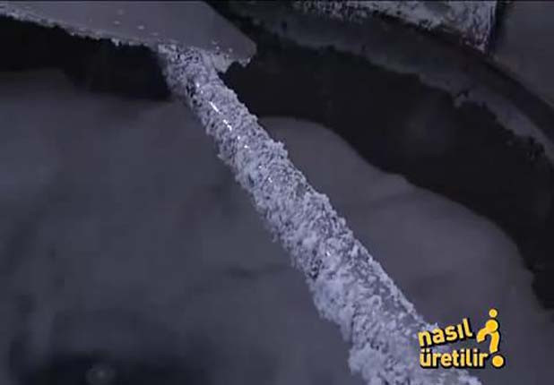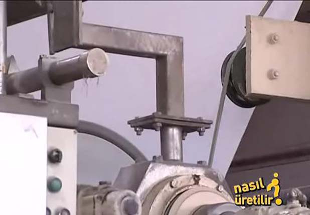 Dakikada 750 metre hızla akan hamurdaki su elekten geçerek ayrılıyor.