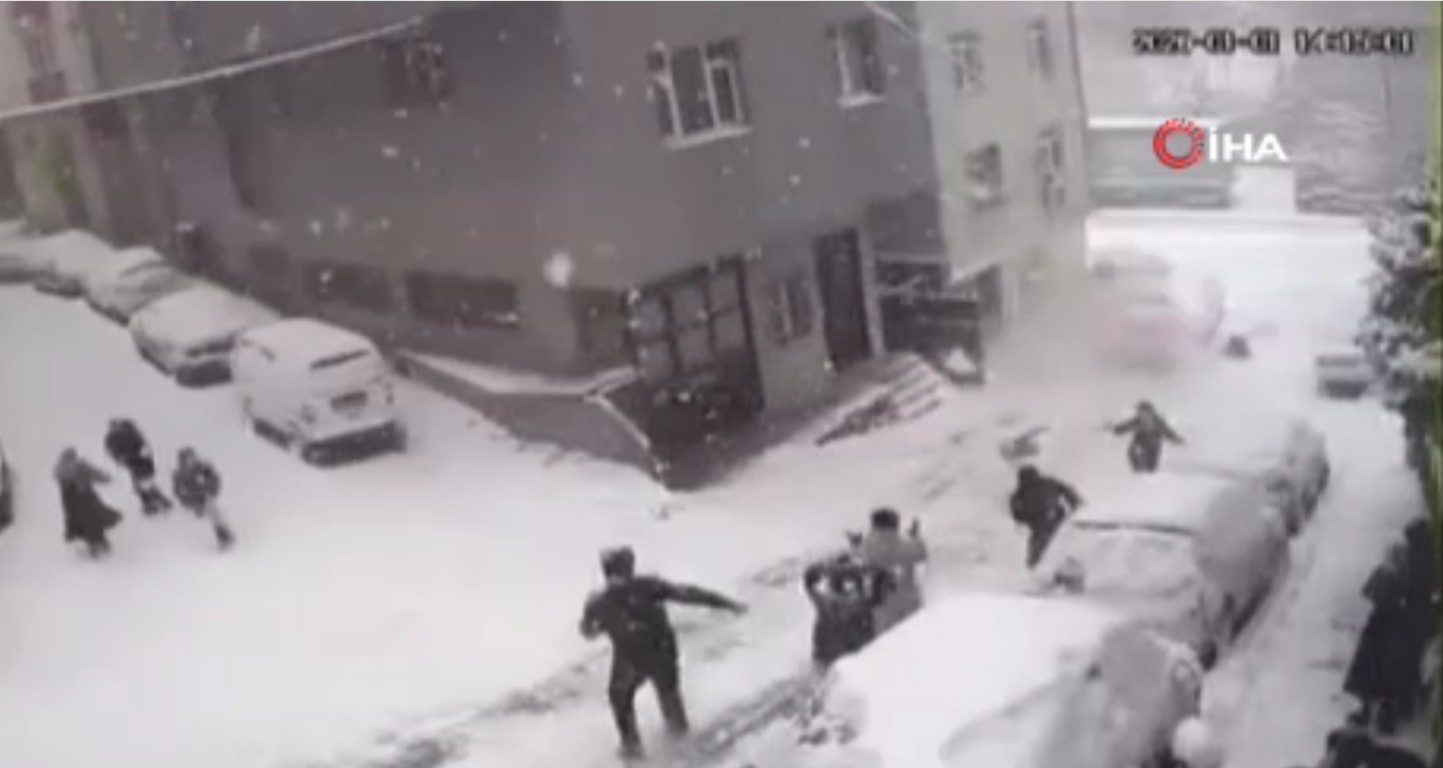 İstanbul Kağıthane'de yokuştan kayan kamyonet, kar topu oynayan çocuklara çarptı. Yol kenarına savrulan 2 çocuk yaralanırken, sürücü olay yerinden kaçtı. Kaza anı güvenlik kamerasına yansıdı.