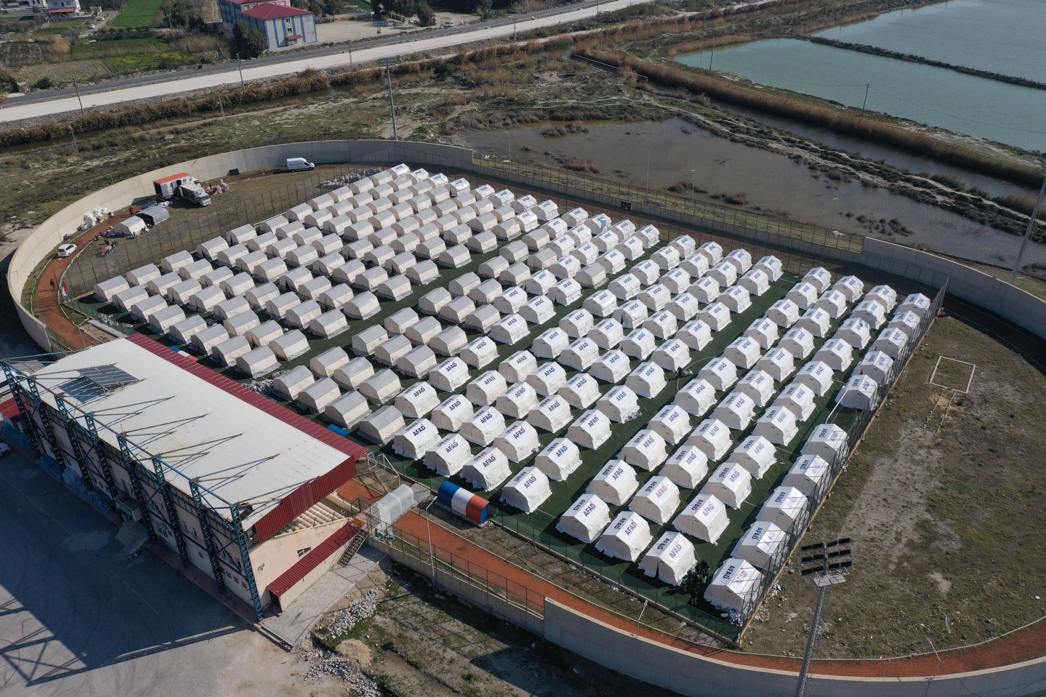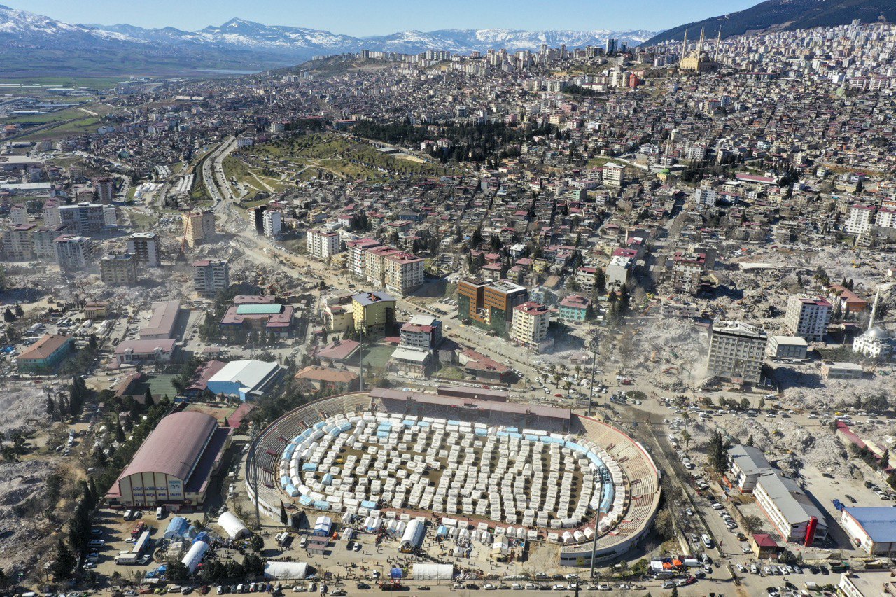 Asrın felaketinin yaşandığı Kahramanmaraş merkezli 10 ili etkileyen depremlerin ardından kent merkezinde bulunan 12 Şubat Stadyumu'nda depremzedeler için Afet ve Acil Durum Yönetimi Başkanlığı (AFAD) tarafından çadırlar kuruldu.