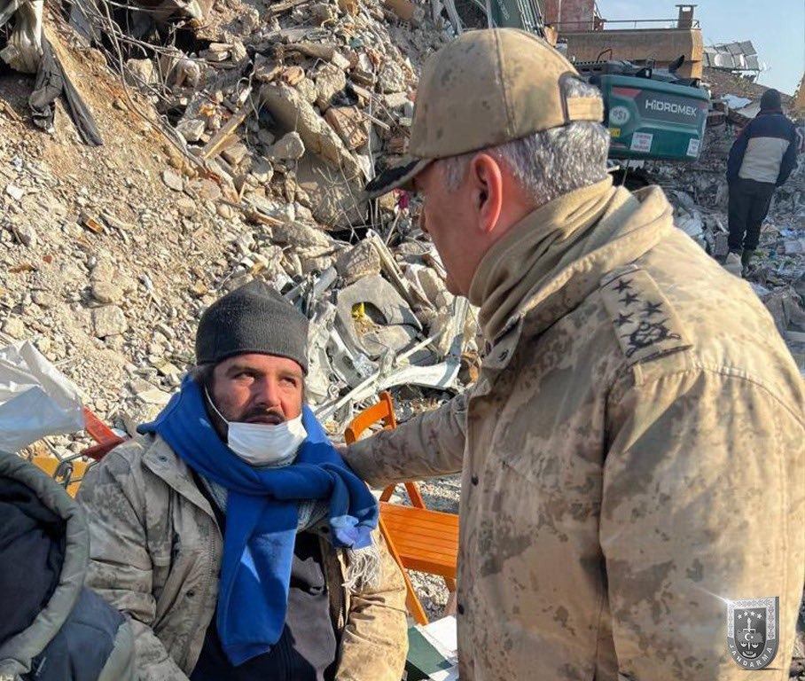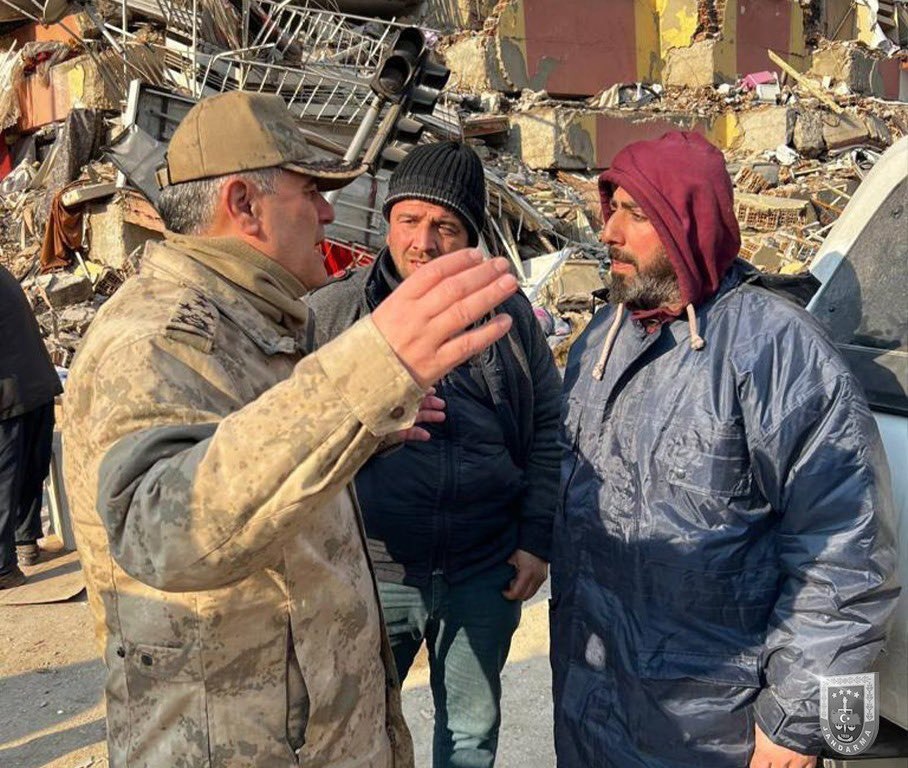 Jandarma Genel Komutan Yardımcısı Orgeneral Ali Çardakcı, deprem bölgesindeki vatandaşları ziyaret ederek arama kurtarma çalışmalarına komuta ediyor.