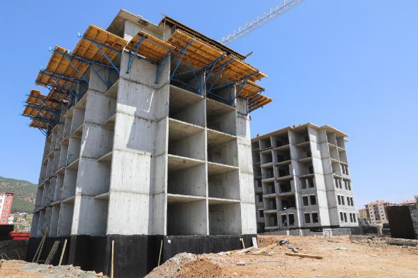 Tünel kalıp sistemiyle inşa edilen ve en fazla 5 kat ile yatay mimarinin esas alındığı hızla yükselen kalıcı konutların bir an önce tamamlanması için çalışmalar yoğun şekilde devam ediyor.