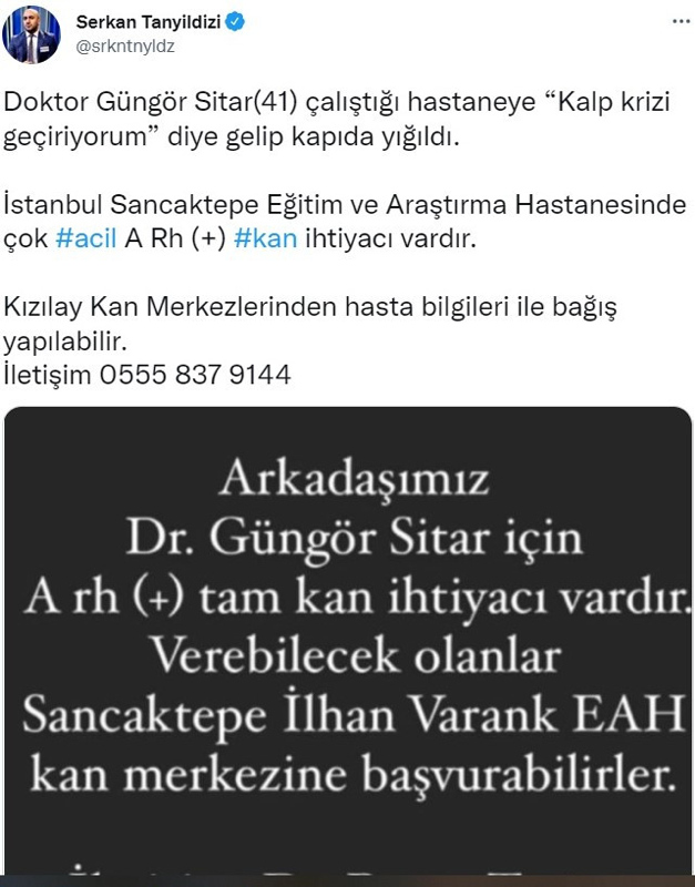 İstanbul'un Sancaktepe ilçesinde İlhan Varank Eğitim Araştırma Hastanesi'nde Dahiliye Uzmanlığı yapan 41 yaşındaki Dr. Güngör Sitar, mesaisine giderken kalp krizi geçirdiğini farkedip otomobilini acil servise sürdü. Sitar, acilin önünde yere yığıldı. Hastanedeki görev arkadaşları tarafından aralıksız bir mücadele ile yaşama döndürülen Güngör Sitar, Trabzonspor'un şampiyonluk maçını serviste seyretti. Yoğun kanamaya rağmen hayata sıkı sıkı tutunan Sitar, "Ekip arkadaşlarımın müthiş çabaları sayesinde mucizevi bir şekilde hayatta kaldım. Ben de hekimim, gördüğüm en ağır kalp krizi vakasıyım" şeklinde konuştu.