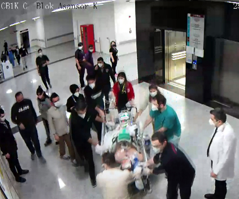 Yardıma koşan güvenlik görevlilerine, "Burada hekimim, sanırım kalp krizi geçiriyorum" diyebildi ve birkaç saniye sonra bilincini kaybetti. Acil kırmızı alanda kalp masajına başlandı ve o şekilde anjiyo ünitesine nakledildi. Burada pıhtı sonucu tıkanan damarına stent takıldı, yoğun bakıma alındı.