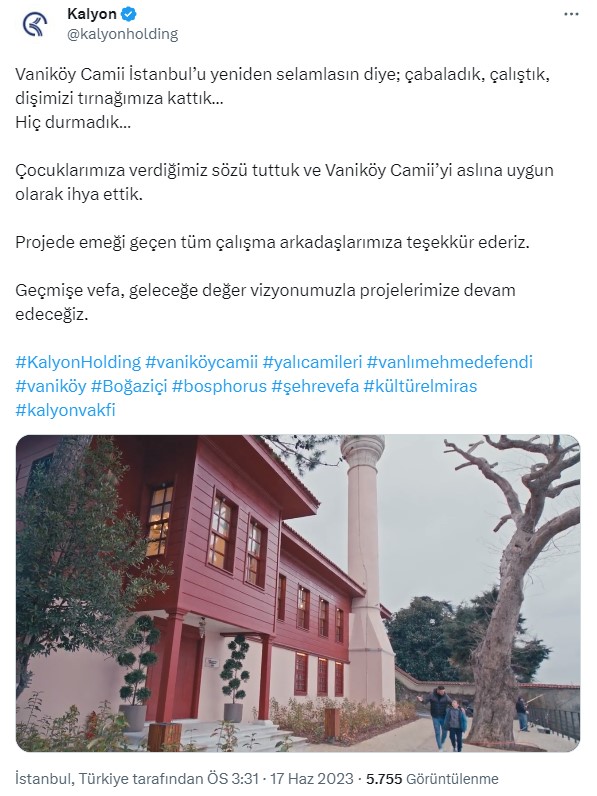 Kalyon Vakfı'ndan Vaniköy Camii açıklaması: Çocuklarımıza verdiğimiz sözü tuttuk