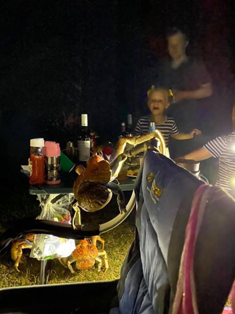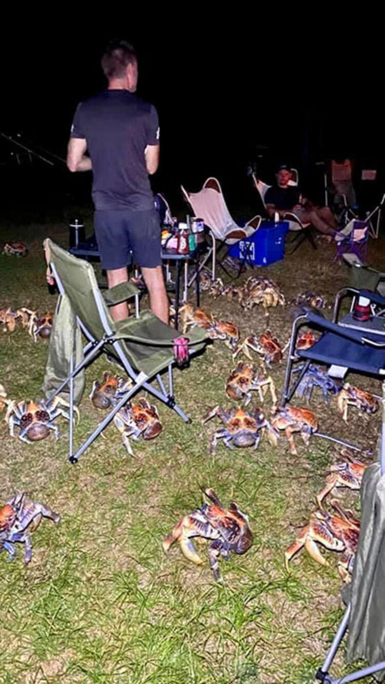 Bir ailenin dünyanın bir ucunda kaydettiği görüntü sosyal medyayı salladı. Kamp yapan ailenin olduğu bölgeyi 50 yıldan fazla yaşayabilen dev yengeçler bastı.