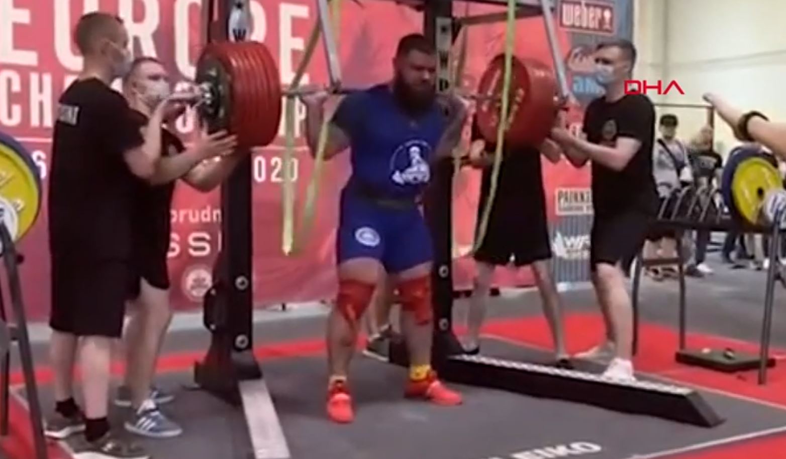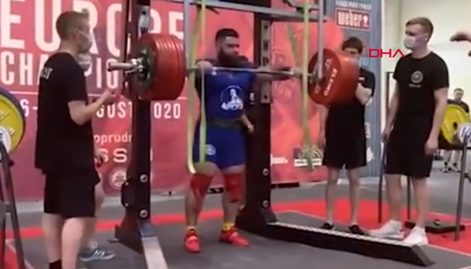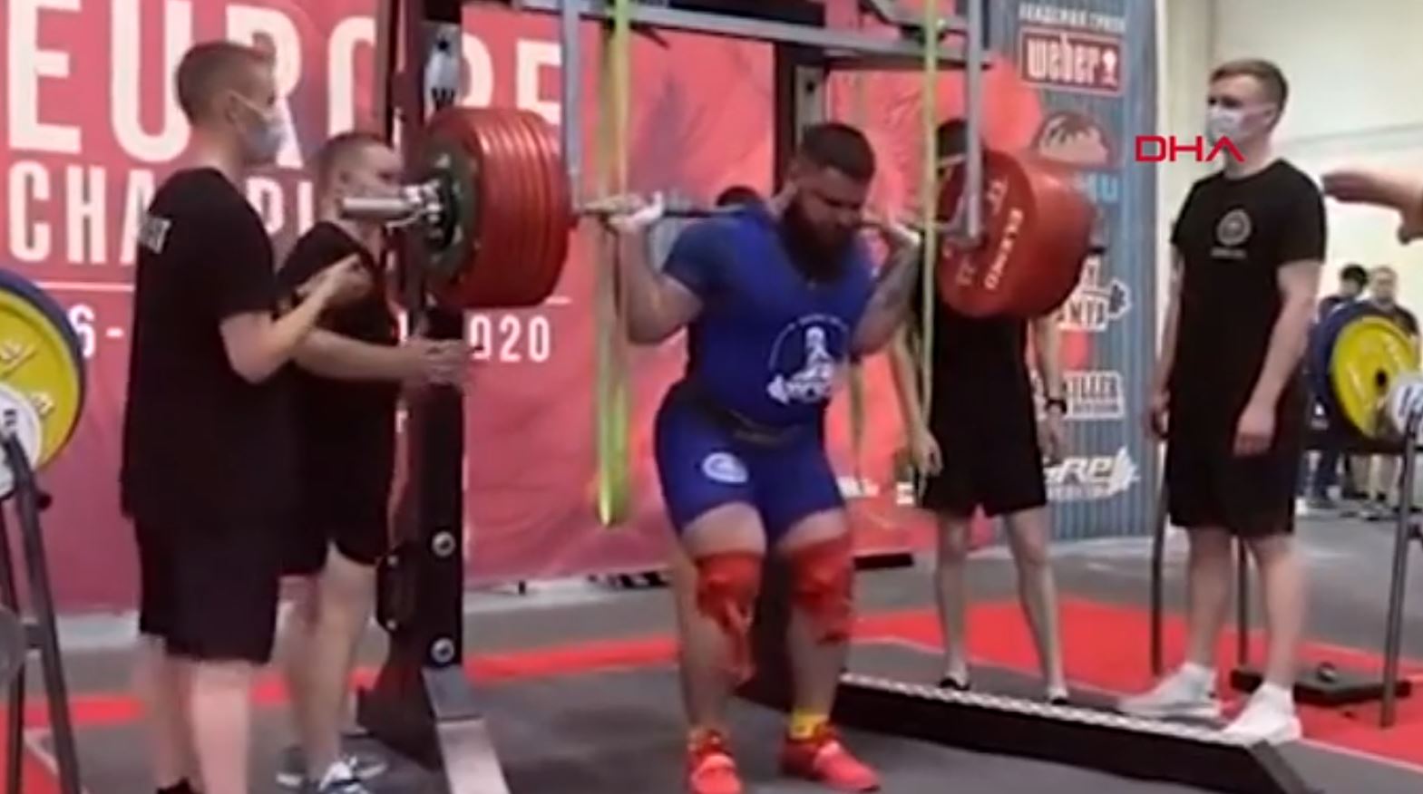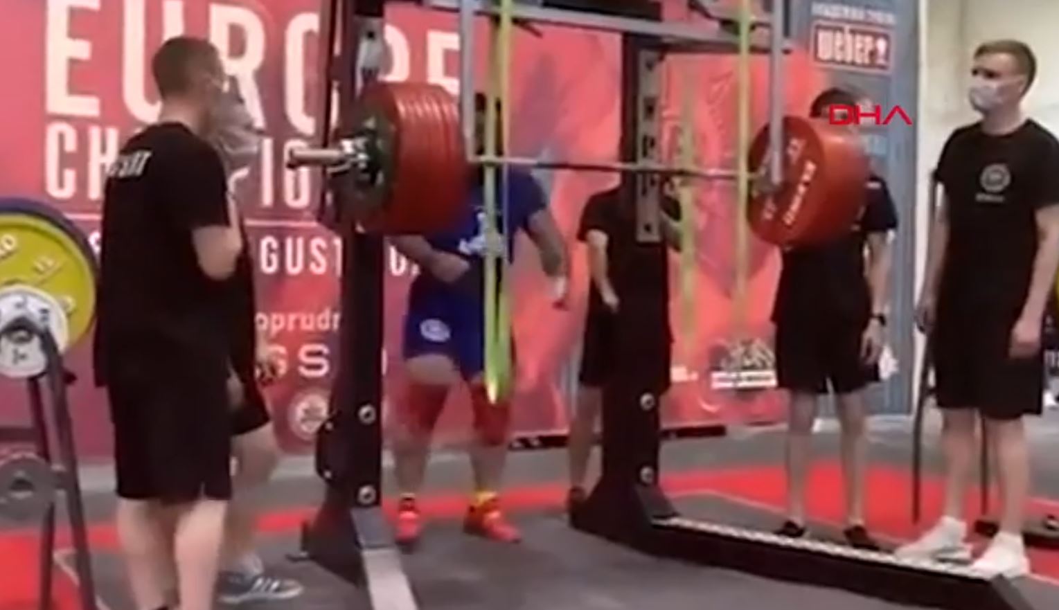 Sosyal medyada paylaşılan görüntülerde, haltercinin çömelerek ağırlığı kaldırmayı denediği sırada dizlerinin büküldüğü görüldü.
