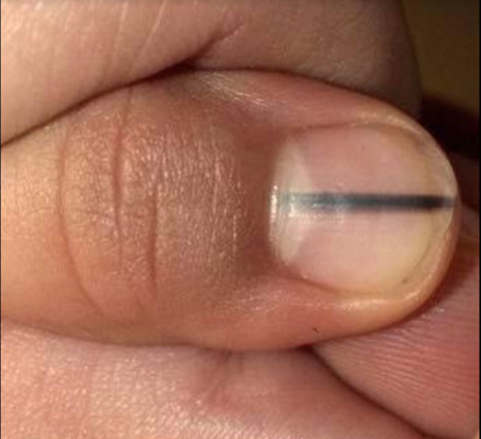 Birkaç hafta önce manikür yaptırmak için güzellik merkezine giden kadının baş parmağının tırnağında siyah düz bir çizgi vardı. Maniküre başlamadan önce çizgiyi kapatacak renkte bir oje sürmelerini söyledi. Bu saniyeden sonra tırnağındeki çizgiyle ilgili çeşitli yorumlar gelmeye başladı.