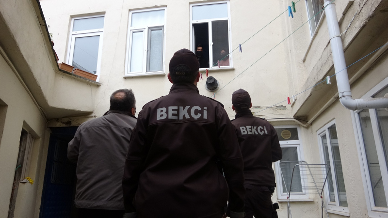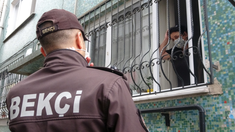 Bursa'da görevli mahalle bekçileri, karantinada bulunan vatandaşların evlerine tek tek giderek kontrollerde bulundu. Karantinadaki kişilerin evde olup olmadığı bu yöntemle tespit edilirken, karantinadakilere cama ya da balkona çıkmaları rica edilerek bilgilendirme yapılıyor.