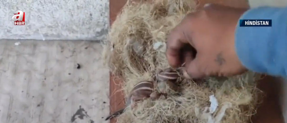 Hindistan'ın Tamil Nadu eyaletinde bahçesinde bulunan tenteden sesler duyan ev sahibi dışarıya çıktı.