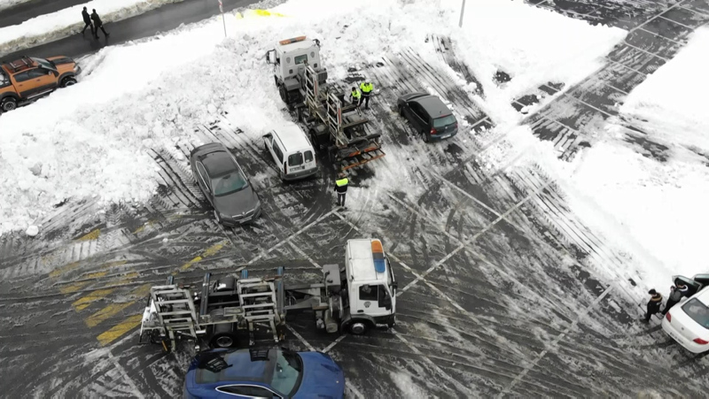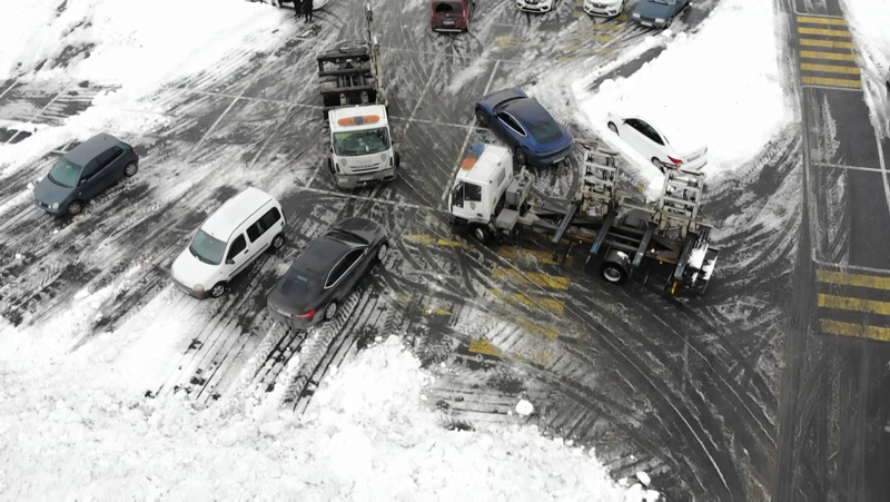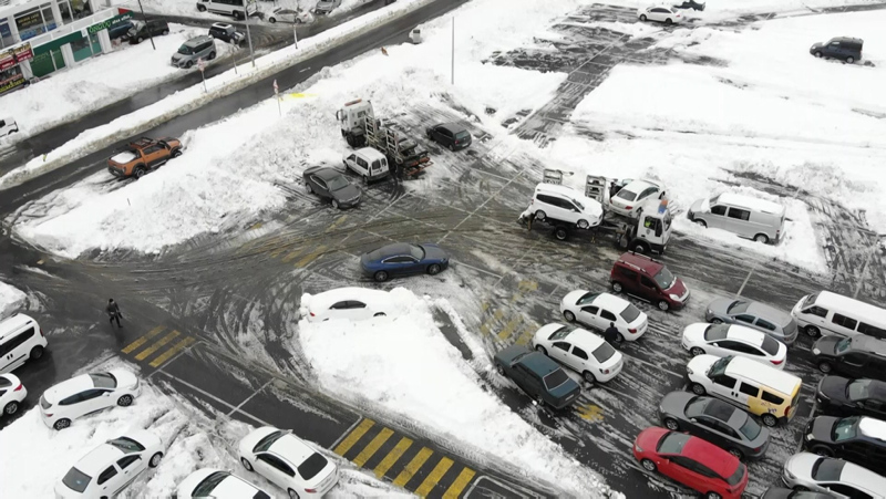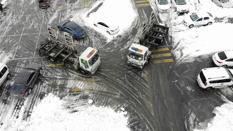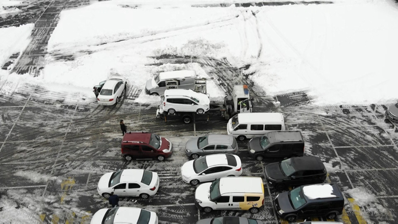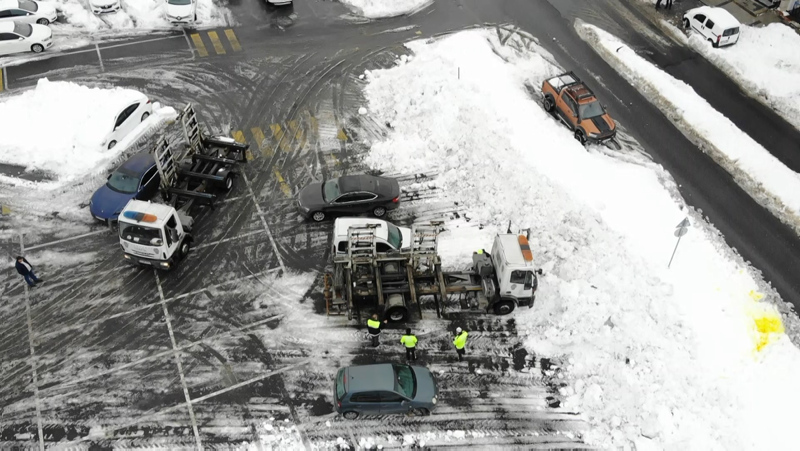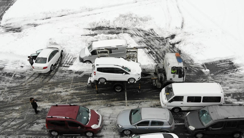 İstanbul'da şiddetli kar yağışı sonrası kapanan yollar nedeniyle birçok sürücü aracını yollarda bırakarak evlerine geçti. Kar yağışı nedeniyle Arnavutköy'de kapanan yolların açılması için çalışmalar sürüyor. Ana arterlerde gelişigüzel park edilen ve kar küreme çalışmalarına engel olan araçlar, Arnavutköy İlçe Emniyet Müdürlüğü Trafik ekipleri tarafından çekicilerle alınarak belediye otoparkına götürülüyor.