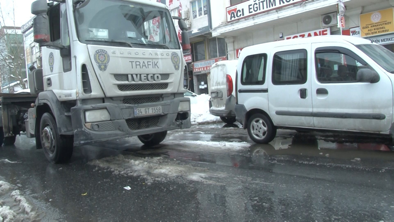 Kar nedeniyle yolda ilerleyemeyen araçlarını bulundukları noktada bırakarak evlerine yürüyerek ulaşmaya çalışan vatandaşların araçları, ekiplerin temizlik çalışmalarına engel olacak şekilde park edildiği için Arnavutköy İlçe Emniyet Müdürlüğüne bağlı Trafik Şube Ekipleri tarafından çekilerek Arnavutköy Belediyesi otoparkına götürüldü.